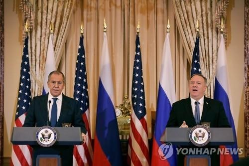 ▲ 기자회견하는 폼페이오 미 국무장관(오른쪽)과 라브로프 러시아 외무장관 [연합뉴스 제공] |