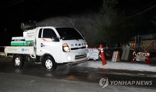 돼지열병 확진 양돈농장 소독하는 방역차량/연합