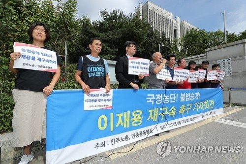 민주노총-민중공동행동 '이재용 부회장 재구속 촉구'/연합