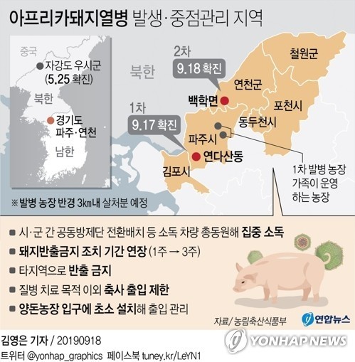 경기 파주에 이어 연천서도 아프리카돼지열병 발생