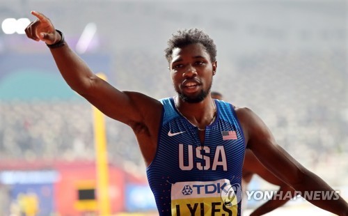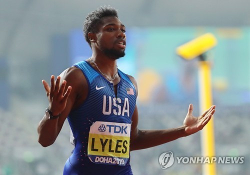 | ▲ 2019 세계육상선수권 남자 200m 챔피언 라일스 노아 라일스가 2일(한국시간) 카타르 도하 칼리파 스타디움에서 열린 2019 세계육상선수권대회 남자 200m 결선에서 우승한 뒤 환호하고 있다. |