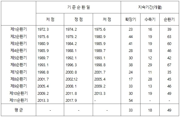 [표] 우리나라 기준순환일 및 국면 지속기간