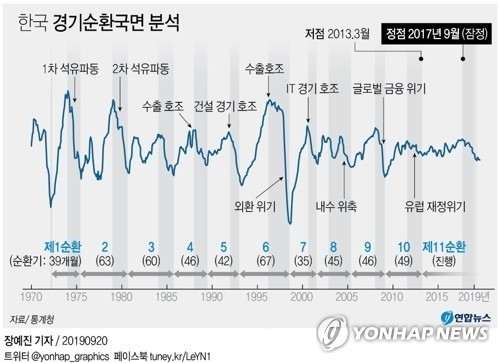 그동안 한국경제는 2013년 3월 저점에서 시작된 '제11순환기' 안에 있었는데, 이번에 2017년 9월이 제11순환기의 정점으로 판정됨에 따라 제11순환기의 경기 상승 기간은 54개월로 정해졌다.