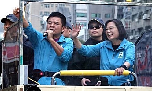 ▲ 지난 10일 오후 대만 타이베이 도심의 중샤오동루에서 차이잉원 대만 총통(오른쪽)이 무개차를 타고 지지자들에게 손을 흔들고 있다. 연합뉴스 제공 |