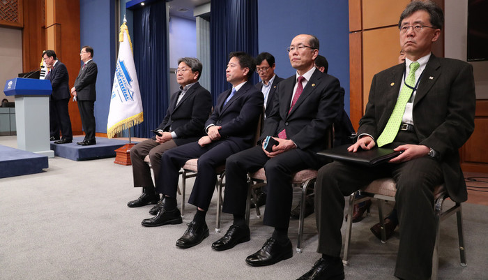 노영민 대통령 비서실장이 "내년 총선과 관련해 당에서 요구하고 본인이 동의하신 분들에 대해서는 저희가 놓아드려야 한다는 생각을 갖고 있다"고 밝혔다. 노 실장은 10일 오후 청와대 춘추관에서 문재인 정부 임기 반환점을 맞아 정의용 국가안보실장, 김상조 정책실장과 함께 공동 기자간담회를 열어 이같이 말했다. 문재인 정부가 출범한 이후 청와대 3실장이 공동 간담회를 연 것은 이번이 처음이다.