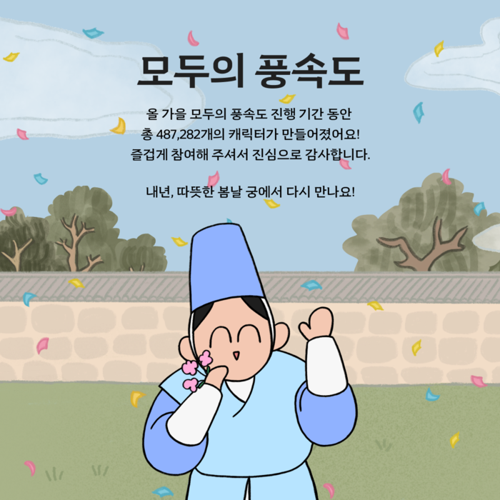 ‘모두의 풍속도’는 김홍도의 풍속화를 현대적으로 재해석해 전통 복식과 머리 모양, 표정 등을 조합해 나만의 조선시대 캐릭터를 만드는 온라인 콘텐츠다. 참가자들은 온라인을 통해 조선 시대 사람들의 생활과 문화적 정서를 시각적으로 체험할 수 있다.