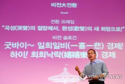 그는 "과거의 낙수(落水)정책이 새 시대의 비전이 되기 어렵다. 이제는 '유수(流水)정책'이 필요하다"며 "지능 자본이 사방으로 흘러넘치는 유수 경제, 협력, 공유, 개방의 새로운 패러다임으로 대한민국을 대전환하겠다"고 강조했다.
