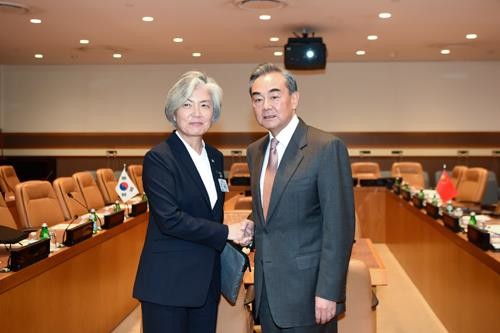 중 왕이 국무위원 방북 후 강경화 장관과 첫 만남