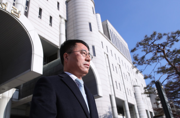 | ▲ '사법농단' 법원 첫 판단, 유해용 선고공판 출석 '사법행정권 남용 의혹'으로 기소된 유해용 전 대법원 수석재판연구관이 13일 오전 서울 서초구 서울중앙지방법원에서 열린 선고공판에 출석하고 있다. 2020.1.13 연합뉴스 제공 |
