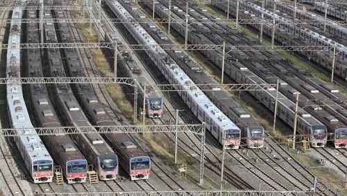 | 전국철도노동조합 파업 이틀째인 21일 오후 서울 구로구 구로차량기지에 열차들이 서 있다. |