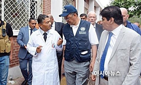 | ▲ 테워드로스 아드하놈 거브러여수스 WHO 사무총장(가운데). WHO 제공 |
