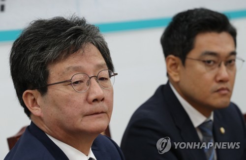 바른미래당 유승민 의원이 30일 국회에서 열린 비상의원총회에 참석해 굳은 표정을 보이고 있다. |