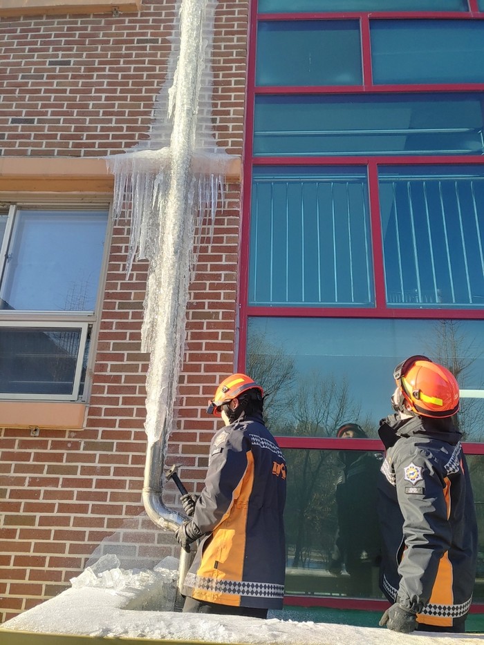 지난 4일 오전 학생들의 등교 시간대에 발견된 고드름은 인명 사고로 이어질 수 있는 아찔한 위협이었다. 소방대원 3명이 사다리를 이용해 수작업으로 제거하는 데 약 1시간이 소요됐다. 경기도북부소방재난본부에 따르면 이날 하루만 해도 지역 내에서 총 3건의 고드름 제거 작업이 진행됐다.