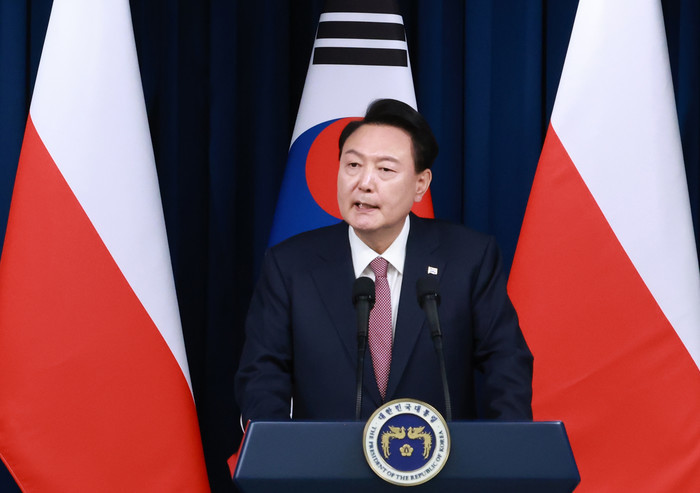 | ▲ 윤석열 대통령이 24일 서울 용산 대통령실에서 안제이 두다 폴란드 대통령과 한·폴란드 공동언론발표에서 취재진의 질문에 답하고 있다. 2024.10.24 연합뉴스 제공 |