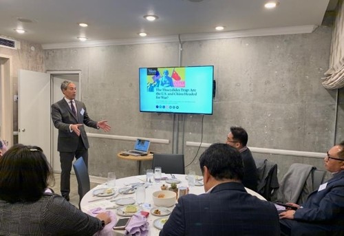 그는 강연 후 질의응답에서 트럼프 대통령의 방위비 5배 증액 압박에 대해 "과거 어떤 미국 대통령도 방위비를 인상하지 않으면 주한미군을 철수시킨다는 언급을 한 바 없다"면서 "주한미군은 아시아 안보 차원에서 미국에 실질적 도움을 준다"고 지적했다.