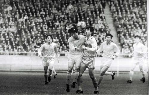 | ▲ 1990년 10월11일 북한 평양에서 열린 남북 통일축구 1차전 경기 장면 |