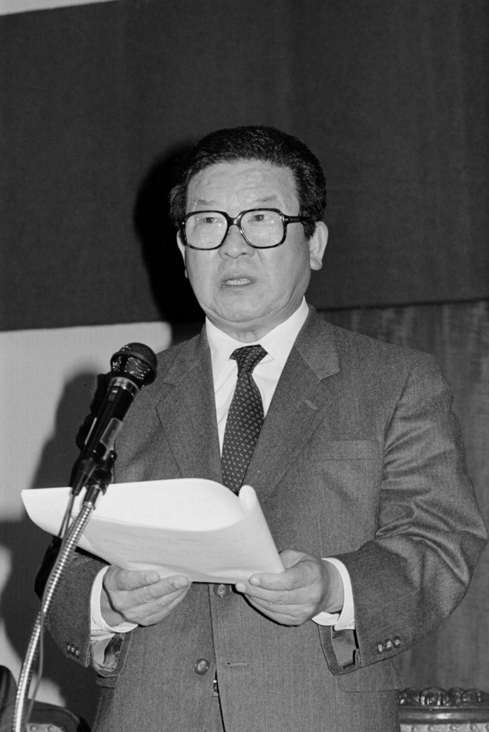 | ▲'LG그룹 2대 회장' 구자경 명예회장 별세 구자경 LG그룹 명예회장이 14일 오전 별세했다. 향년 94세. 사진은 1987년 2월 서울 여의도 전경련 회관에서 전경련 회장 이취임식을 갖고 있는 구자경 당시 LG 회장. 2019.12.14 연합뉴스 제공 |