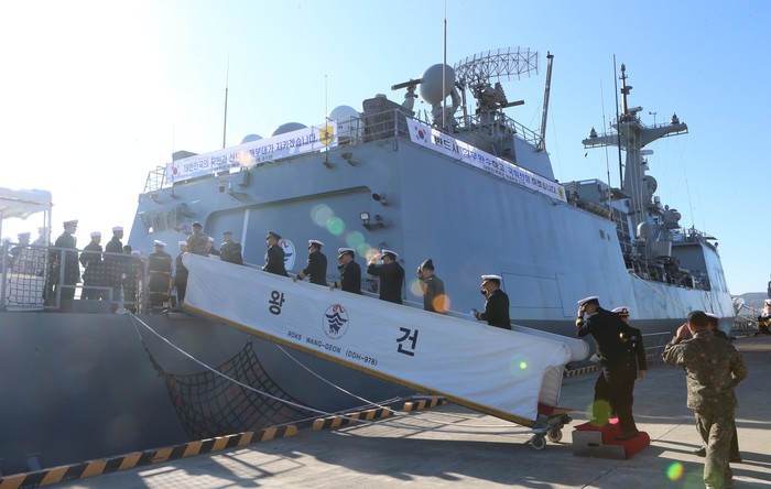 ▲ 지난해 12월 27일 오전 부산 해군작전사령부에서 청해부대 31진 왕건함 파병에 앞서 해군 지휘부가 승선원들을 격려하기 위해 함정에 오르고 있다. 연합뉴스 제공 |