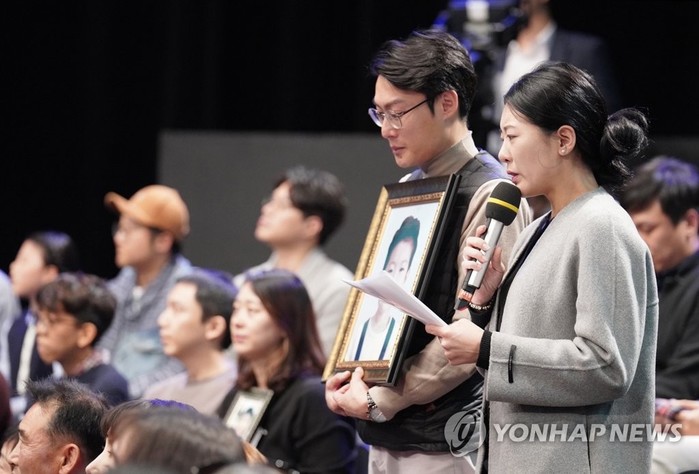 19일 오후 서울 상암동 MBC에서 열린 '국민이 묻는다, 2019 국민과의 대화'에서 고(故) 김민식 군의 부모가 문재인 대통령에게 질문하고 있다. |