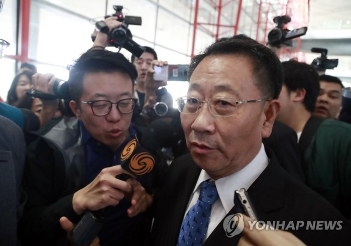 김명길 대사는 이날 오전 베이징 서우두(首都) 공항 3터미널에 도착한 뒤 일반 통로로 나와 공항에서 기자들의 질문에 "추후 회담은 미국 측에 달려있다"면서 "이번 회담은 역스럽다"고 불만을 토로했다.