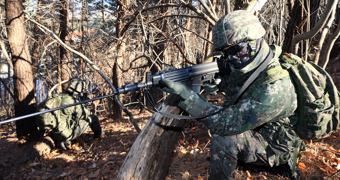| ▲ 새해 벽두부터 강도 높은 훈련에 나선 육군 8군단 특공대원들이 2일 주둔지 훈련장에서 침투한 적을 찾아내 격멸하는 탐색격멸작전을 펼치고 있다. 연합뉴스 제공 |
