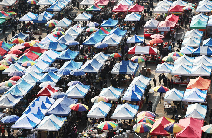▲ 설을 열흘여 앞둔 14일 오후 경기도 성남시 모란시장에서 시민들이 제수 등을 준비하고 있다. 연합뉴스 제공