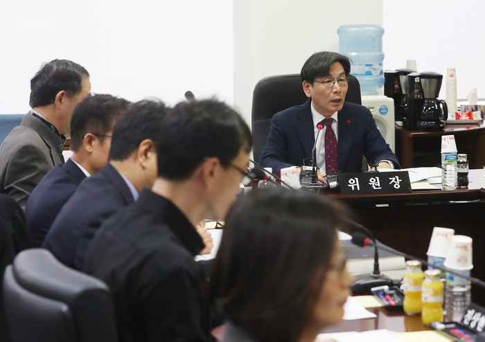 ▲ 엄재식 원자력안전위원회 위원장이 24일 오전 서울 원자력안전위원회에서 열린 회의를 주재하고 있다. 원자력안전위원회가 이날 회의에서 경북 경주시 월성 원자력발전소 1호기의 영구정지를 다시 논의하고 있다. 연합뉴스 제공 |