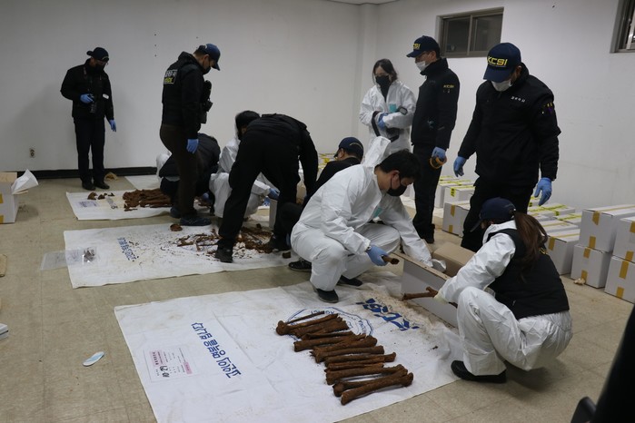 | ▲ 신원미상 유골 육안 검시하는 합동감식반. 연합뉴스 제공 |