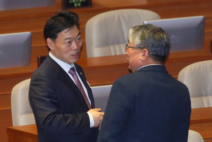 | ▲ 이야기 나누는 김오수 조응천 김오수 법무부 차관(왼쪽)과 더불어민주당 조응천 의원이 9일 국회 본회의장에서 이야기를 나누고 있다. 2020.1.9 연합뉴스 제공 |