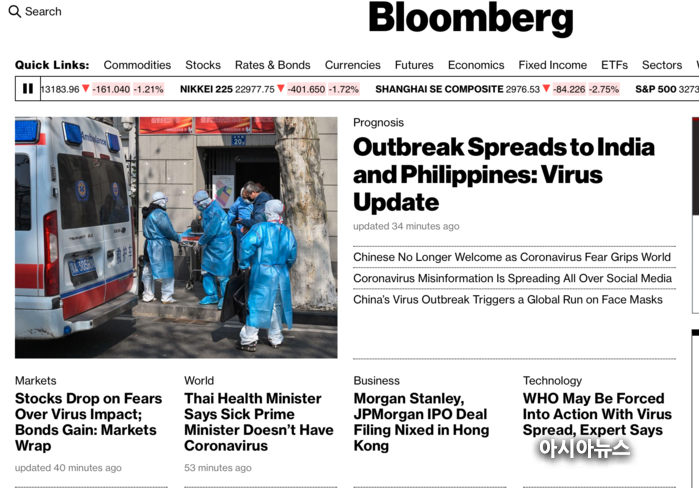 ▲ 신종 코로나바이러스 확산으로 인해 세계 각지에서 중국인 혐오현상이 기승을 부리고 있다. 블룸버그 통신 홈페이지 캡처 |
