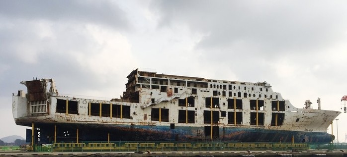 | ▲ 11일 오전 전남 목포신항 앞 바다에서 인양된후 거치된 세월호의 모습이 보이고 있다. 연합뉴스 제공 |
